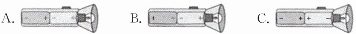 1. 要使手电筒能够正常使用,那么两节干电池的放置方式中,正确的是(