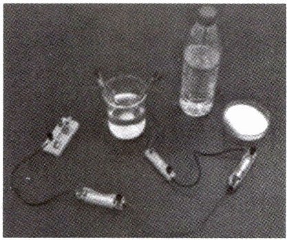五、将自来水接在检测装置中时,灯泡亮度较小,加入食盐后灯泡变更亮了。 因为自来水能导电,所以灯泡发亮;盐水的导电性比自来水的导电性好,所以灯泡变更亮了。