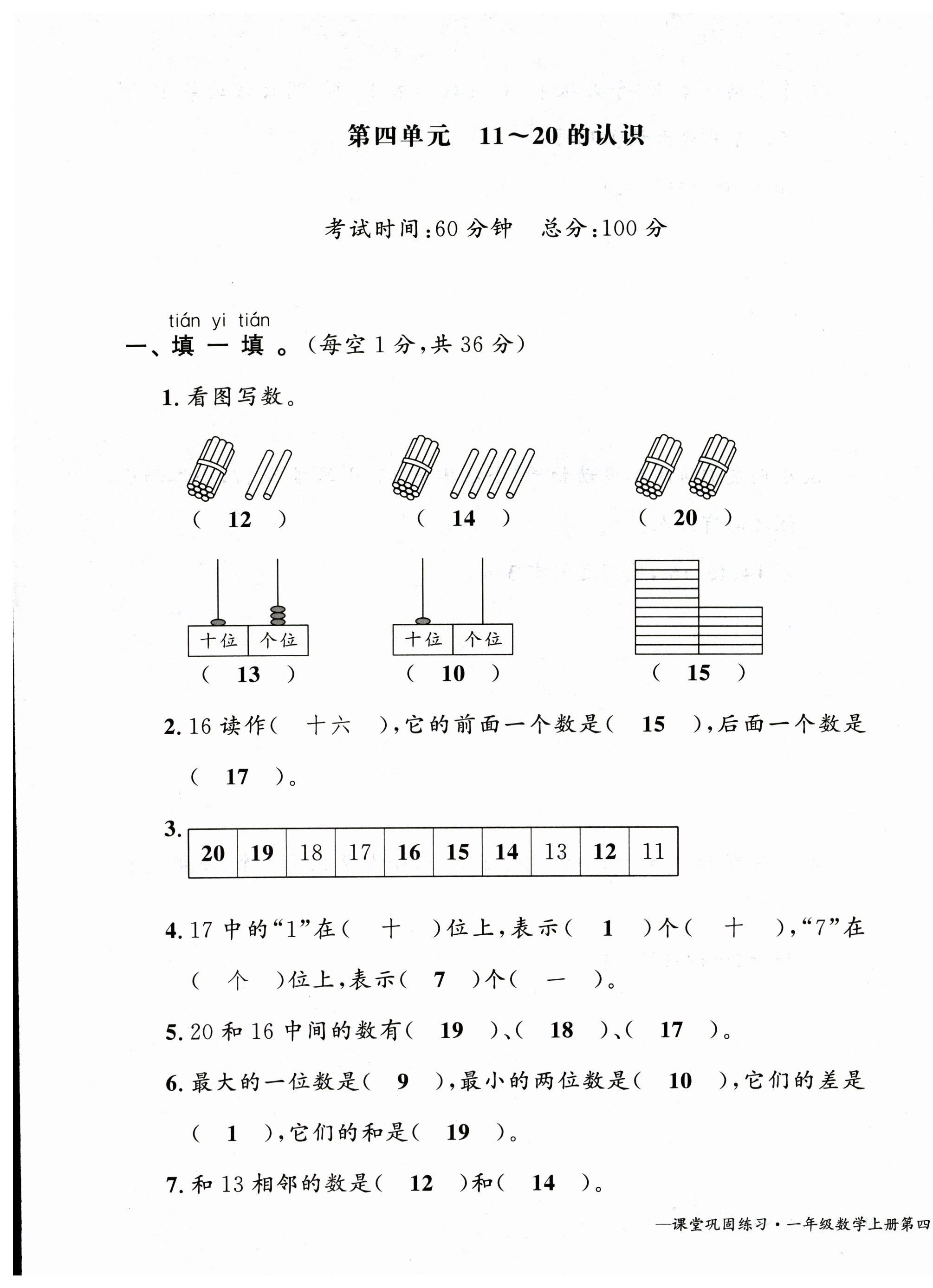注:目前有些书本章节名称可能整理的还不是很完善,但都是按照顺序排列的,请同学们按照顺序仔细查找。练习册 2025年课堂巩固练习一年级数学上册人教版 答案主要是用来给同学们做完题方便对答案用的,请勿直接抄袭。