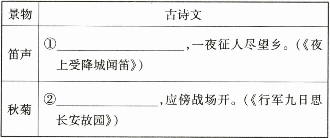 6.(8 分)生活中处处可学习,可成长。小乐发现古诗文中作者常借助特定的景物表情达意,请你根据提示填写内容。