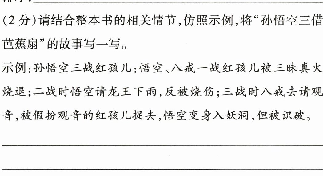 22.(2 分)请结合整本书的相关情节,仿照示例,将“孙悟空三借芭蕉扇”的故事写一写。