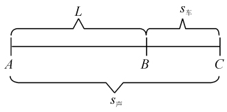 解:依题意可得如图行程线段图,可见,声音在$ \frac{t}{2} $的时间内通过的路程$ s_{声} $与$ L $、$ s_{车} $之间存在如下关系: