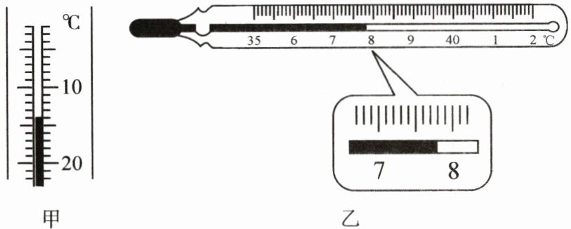 15. (1)如图是人们常用的温度计,图甲温度计的示数是