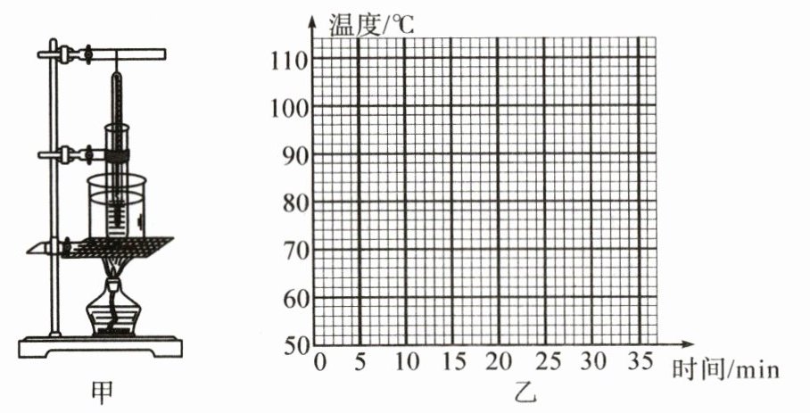 $^{\circ}C$。(2)图甲是“探究萘熔化过程中温度变化规律”的实验,每隔 5 min 记录一次温度值,并观察萘的状态,实验数据记录如下表: