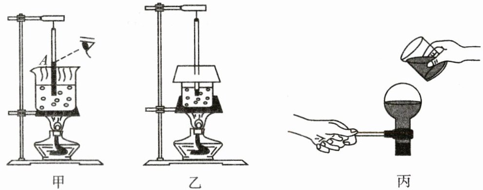 。(5) 水沸腾后把水倒进烧瓶,水会停止沸腾,迅速塞上瓶塞,把烧瓶倒置并向瓶底浇冷水,如图丙所示,发现烧瓶内的水重新沸腾起来,这是因为烧瓶内水面上方的气压