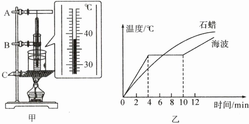 $ ^{\circ}C $。(3) 根据实验数据绘制的两种物质熔化时温度随时间变化图象如图乙所示,由图象可知石蜡是