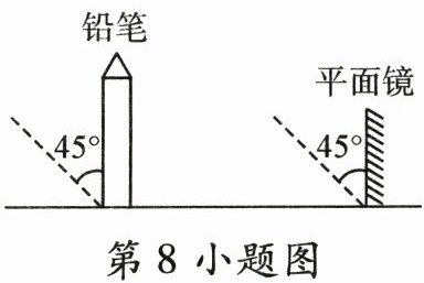 8. 如图所示,平面镜和长为 10 cm 的铅笔均竖直放置在水平桌面上,铅笔与平面镜之间的距离为 15 cm,则(