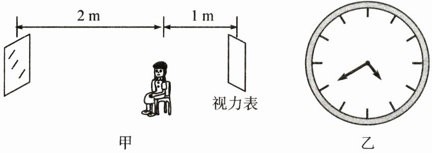 12. 如图所示,测量视力时,利用平面镜成像特点可以节省空间,让被测者面对镜子背对视力表,被测者看到视力表的像离他的距离是