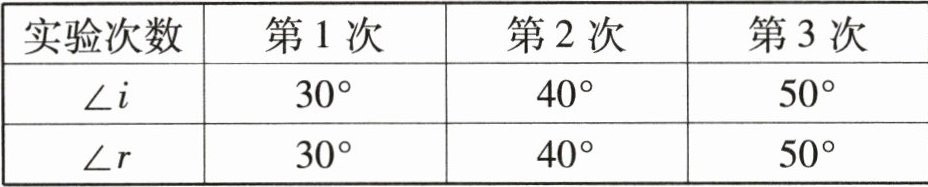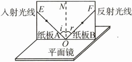 (1)让一束光贴着纸板 A 沿 EO 方向射向镜面,在纸板 B 上可看到光线沿 OF 方向射出,在纸板上用笔描出光线 EO 和 OF 的轨迹。多次改变入射角的大小,测得实验数据如表: