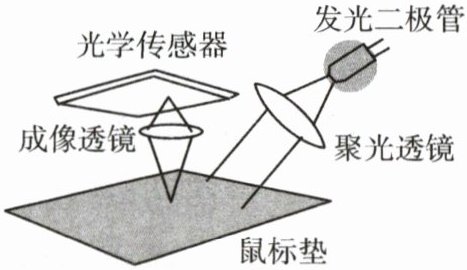 反射。(2) 将鼠标平放在鼠标垫上,成像透镜距鼠标垫 7 mm,光学传感器距成像透镜 3 mm,则在光学传感器上成