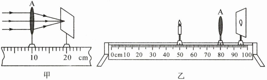 (1)首先,用平行光正对凸透镜 A 照射,如图甲所示,光屏上出现一个最小最亮的光斑,则凸透镜的焦距 f =