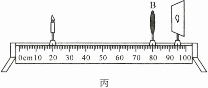 (2)然后,适当调整凸透镜 A 和光屏的位置,移动蜡烛,使烛焰在光屏上成清晰的像,如图乙所示;接着,她将凸透镜 A 换为焦距稍大的凸透镜 B,并保持位置不变,移动蜡烛,使烛焰在光屏上再次成清晰的像,如图丙所示。可见小丽研究的问题是:当凸透镜成实像时保持