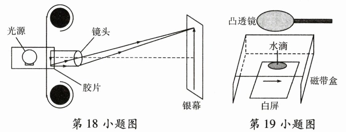 18. 如图所示,小明利用凸透镜成像原理来研究电影放映时银幕上的影像情况。