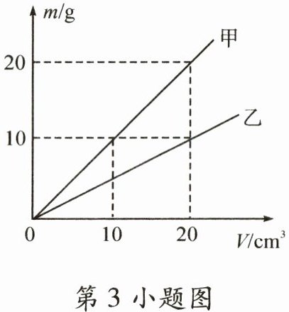 3. 如图为甲、乙两种物质的 $ m - V $ 图象。下列说法正确的是 (