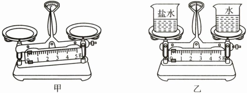 ② 将上述装有盐水和水的烧杯分别放在天平的左盘和右盘,天平不平衡;