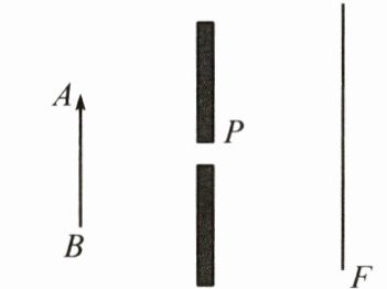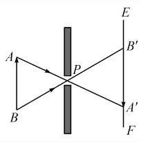 2. 如图所示,$ AB $ 为发光体,$ P $ 是不透明物体上的一个小孔,$ EF $ 为光屏,试画出 $ AB $ 在 $ EF $ 上所成的像 $ A'B' $。