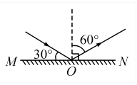 3. 光线与平面镜成 $ 30^{\circ} $ 角射在平面镜上,如图所示,请根据光的反射定律画出它的反射光线,并标明反射角的大小。