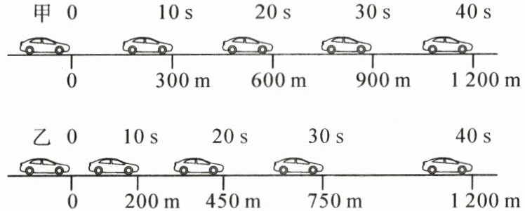 5. 如图记录了甲、乙两车同时在同一平直公路上行驶时,在相同的时间内通过的路程,以下分析正确的是(