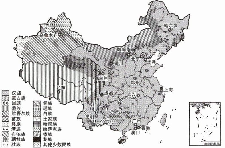 11. 由上图可见,下列省级行政区中少数民族种类最多的是(