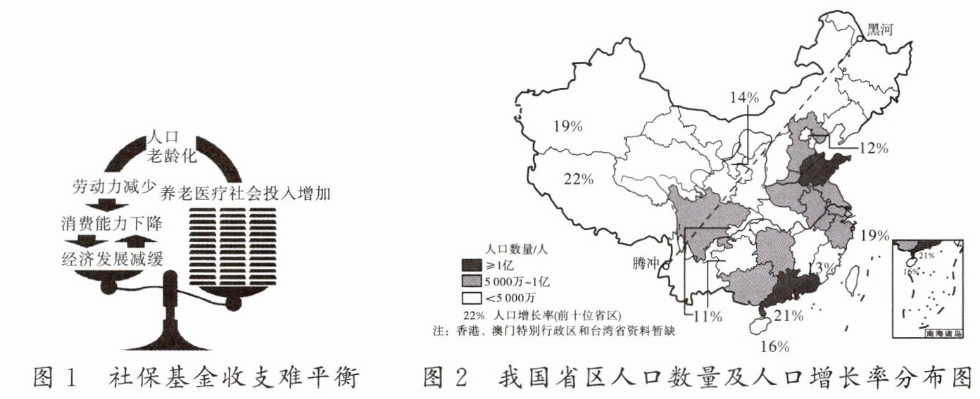 。结合图 1 说出该人口问题会引发的社会经济问题。(2)人口数量超过 1 亿的省级行政区是