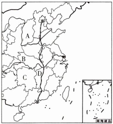 4. 图中A、B、C、D四省的简称分别是(