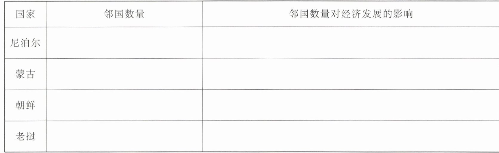 3. 比较我国与以下国家在邻国数量上的差异,并分析邻国数量对经济发展的影响。