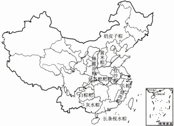 下图是我国十大特色粽子分布示意图。读图,完成6~7题。