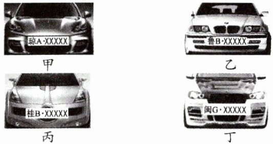 生活中,我们接触到的很多事物都蕴含着丰富的地理信息。读甲、乙、丙、丁4幅汽车牌照图,完成12~13题。
