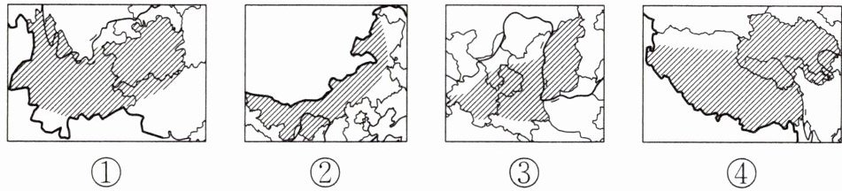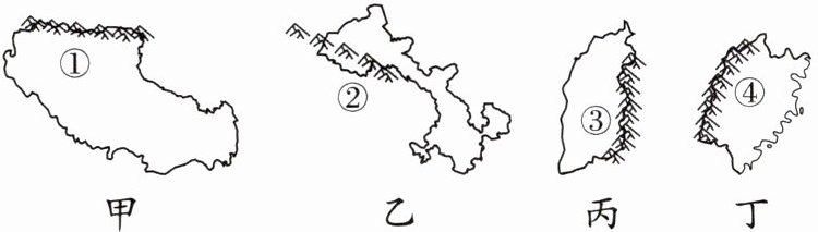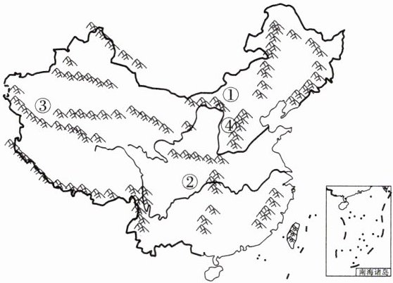 中国各地秀美的名山大川,在很多小说中多次呈现。下面为我国某四大省区轮廓及山脉分布图。读图,完成13~14题。