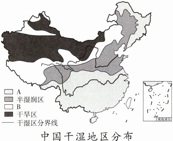 量的对比关系,反映该地气候的干湿状况。(2)干湿地区年降水量及主要植被