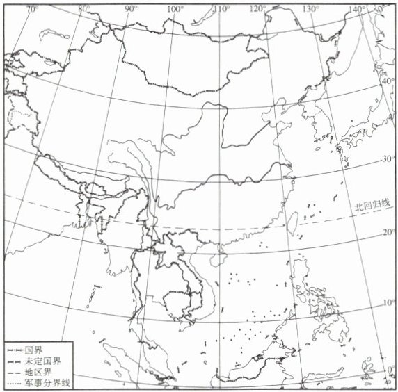 中国既是陆地大国,也是海洋大国,疆域辽阔。读中国疆域示意图,完成 7~8 题。