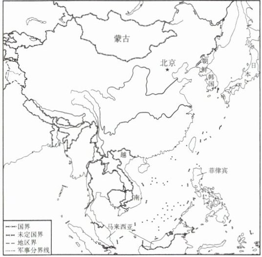 7. 图中既与我国接壤,又隔海相望的国家是(