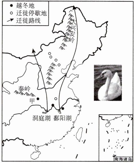 15. 小天鹅越冬地中,甲位置偏北的主要原因是(