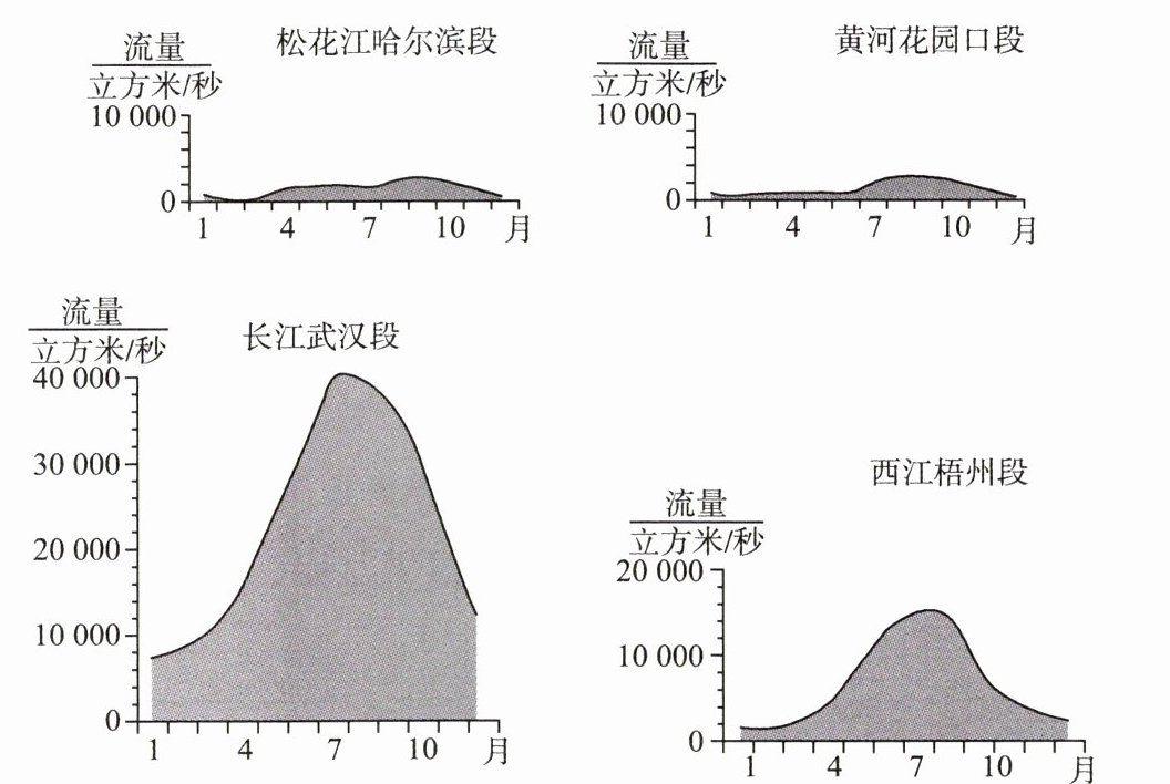 2. 四条河流的汛期都出现在夏季,试分析原因。我国内流河的汛期也集中在夏季,其成因与上述河流相同吗?若不同,请分析原因。