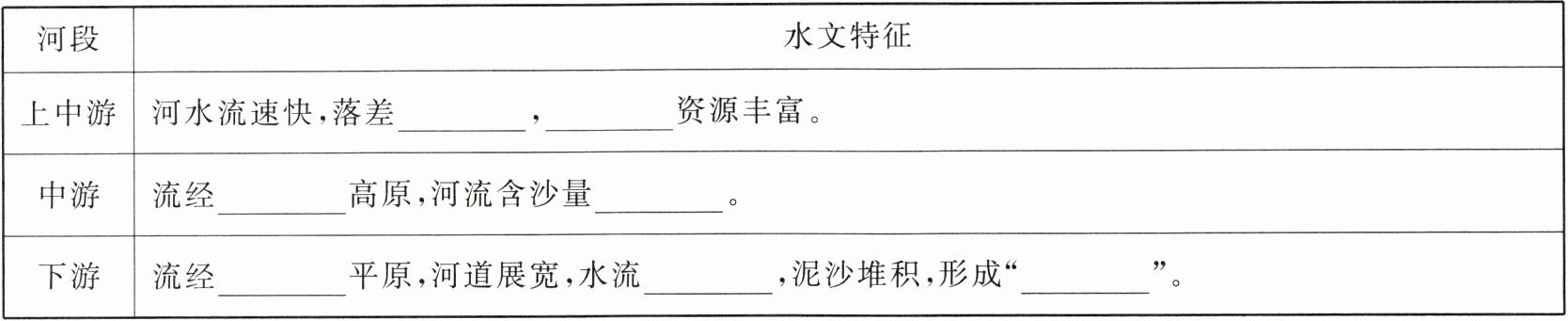 3. 根据各河段流经的地形区,推测其水文特征。