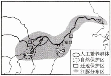 2024年3月3日是“世界野生动植物日”,我国的主题是“构建野生动植物智慧保护体系”。近年来,随着野生动植物智慧保护体系的不断建设和完善,有“水中大熊猫”之称的长江江豚数量实现稳中有升。读长江流域江豚分布图,完成5~7题。