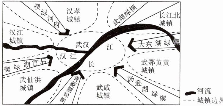 “绿楔”(楔状绿地)是指像楔子一样嵌入城市空间中的城市生态景观。科学规划城市绿楔,可以让凉爽的风进入城市内部。下图示意武汉六大绿楔规划,据此完成 8~9 题。