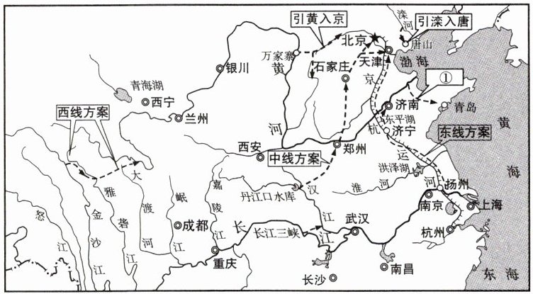 8. 读我国跨流域调水示意图,回答下列问题。