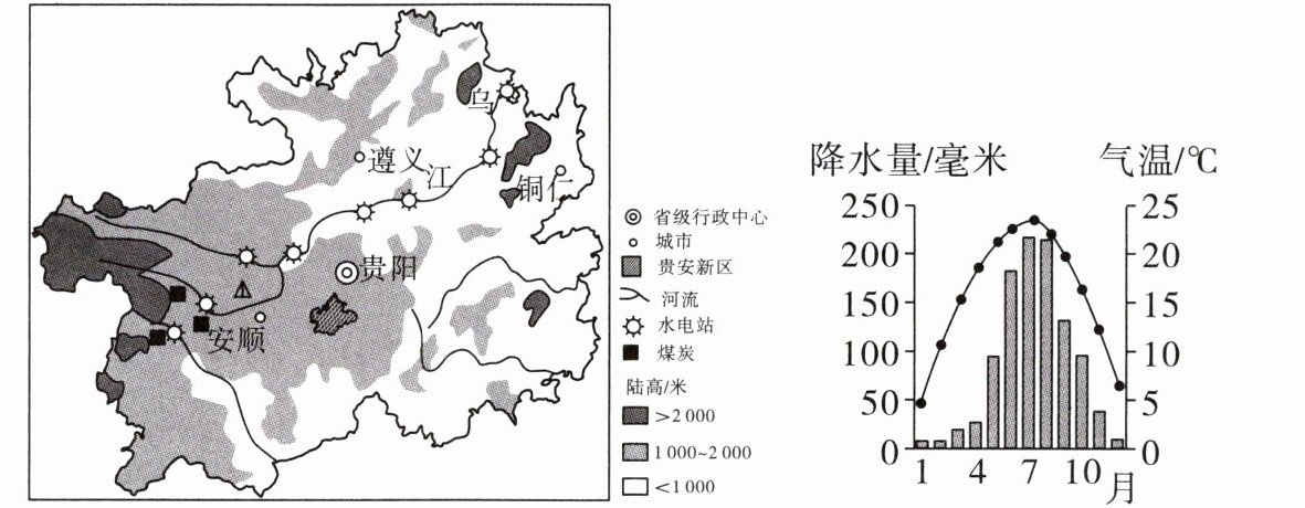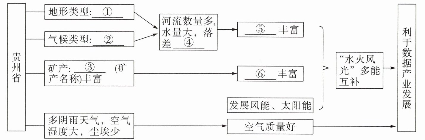 1. 贵安新区发展算力枢纽产业,得益于贵州省拥有丰富的能源资源。结合图文资料,完成自然条件和资源的关系分析。