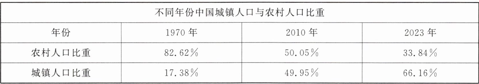 读不同年份中国城镇人口与农村人口比重表,完成 8~9 题。
