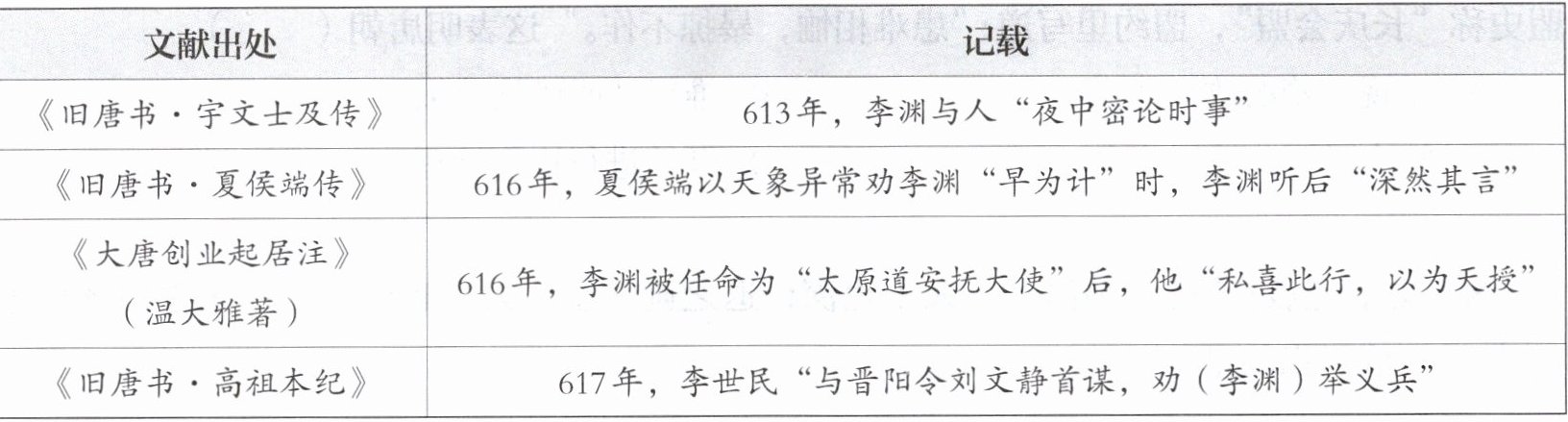 3. 关于隋朝太原留守李渊起兵反隋(617年)一事,文献中有下列不同记载。