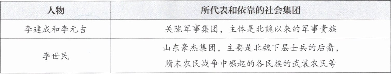 4. 对于玄武门之变,史学界的一种观点认为双方各自代表不同的社会阶层,简况如下表所示。