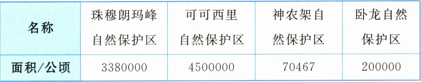 3. 下面是4个自然保护区的面积,其中面积最大的是(