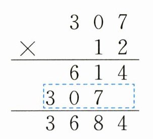 9. 某瓷器厂平均每月生产307件,那么一年能生产多少件?下面虚线框中的数表示( )。