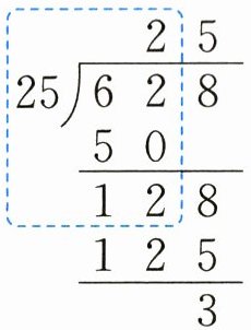 10. 做一只风筝需要25米绳子,现有628米绳子,能做多少只这样的风筝?虚线框中表示做25只风筝后还剩(