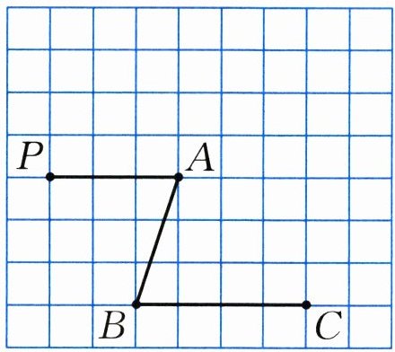 )$PA$的长度。(填“大于”“小于”或“等于”)(1分)(3)找到一个点$D$,使四边形$ABCD$是一个平行四边形,并画出这个平行四边形。(1分)