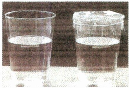 3. 2~3天后,盖了塑料薄膜的杯子里的水