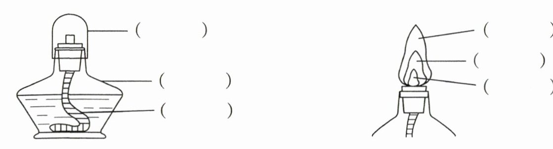 4.从上到下:灯帽 灯体 灯芯 外焰 内焰 焰心