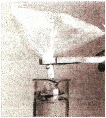 3. 将套有塑料袋的漏斗放在沸腾的水面下,本来瘪的塑料袋会