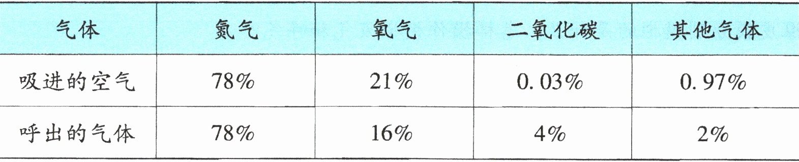 1. 人体呼出的气体和吸进的气体相比,